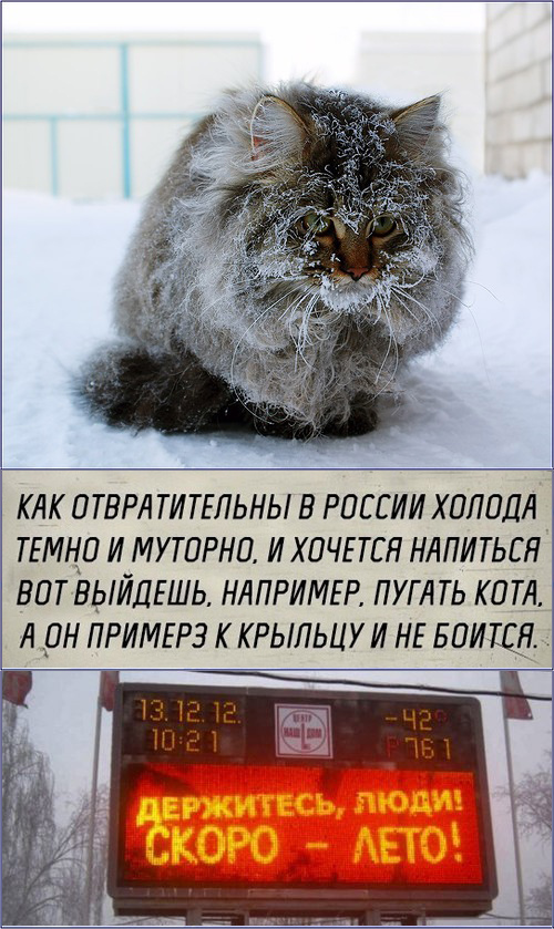 Девушка в автобусе держит на коленях котёнка и нежно его гладит. Сидящий напротив мужчина говорит с намёком: - Хотел бы я оказаться на месте вашего котёнка! - Ну это вряд ли: я везу его к ветеринару на кастрацию... -------------------------------------------------------------------------------------------------- - Девушка, дайте ваш телефончик. - Ишь, какой прыткий. Это что, любовь с первого взгляда? - Ишь, какая романтичная. Это ограбление! ________________________________________________________ - Привет. - Привет. - Что делаешь? - Пресс качаю! - А что это? - Полезно для фигуры и для здоровья! - Дай ссылку, я тоже скачаю … _______________________________________________________ Я так смеялась, когда узнала, что кузнечики на украинском языке - СТРИПИЗДИКИ))) А духи на польском - вонявки)))) А грудь на сербском - сисюрдаче ))))) Получается примерно так: набрызгала я свои сисюрдачки вонявкой и побежала на работу как стрипиздик)) ________________________________________________________ Муж будит жену ночью и протягивает ей стакан воды и таблетку анальгина. — Зачем? — спрашивает жена. — У меня голова не болит. Муж, срывая с себя трусы: — АГА!!! ПОПАЛАСЬ!!! ________________________________________________________ Мент ловит наркомана в зоопарке: - Кололся? - Нет. - Проверим. - Кто там в клетке сидит? - показывает на кенгуру. Наркоман тупо смотрит на животное: - Заяц.... лет 40-45 _______________________________________________________ История произошла 30 декабря в районе, где располагаются дома 4-5 этажей и обычно организуют своим строением небольшие и уютные дворики. И вот мой коллега шел в гости к своей сестре, а перед ним шел молодой мужчина, ведя с собой мальчика за руку лет 4-5. Входит вся эта компания в небольшой и уютный дворик с мягкими сугробами и наблюдают весьма необычную картину — два Деда Мороза, отбросив в сторону свои посохи, дерутся на кулаках. Наша компания останавливается в недоумении и смотрит на эту необычную картинку. У мальчика, который продолжает верить в Деда Мороза и ожидает чуда, сказка просто рушится на глазах, слезы вот-вот нагрянут и он в ужасе спрашивает: «Папа, что это? « Папа, не растерявшись, говорит: «Не волнуйся, сынок, это Новый Год Старый провожает»!