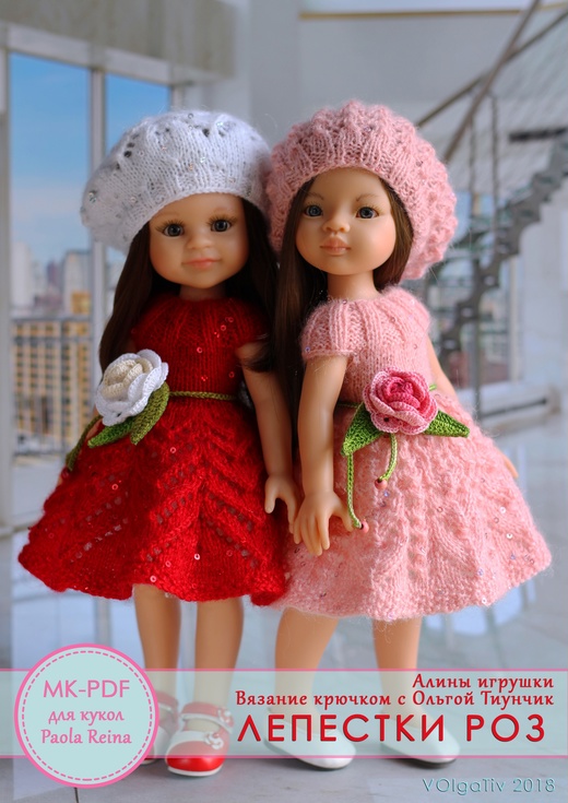PDF мастер-класс по вязанию спицами нарядов "Лепестки роз" для кукол Paola Reina [Ольга Тиунчик]