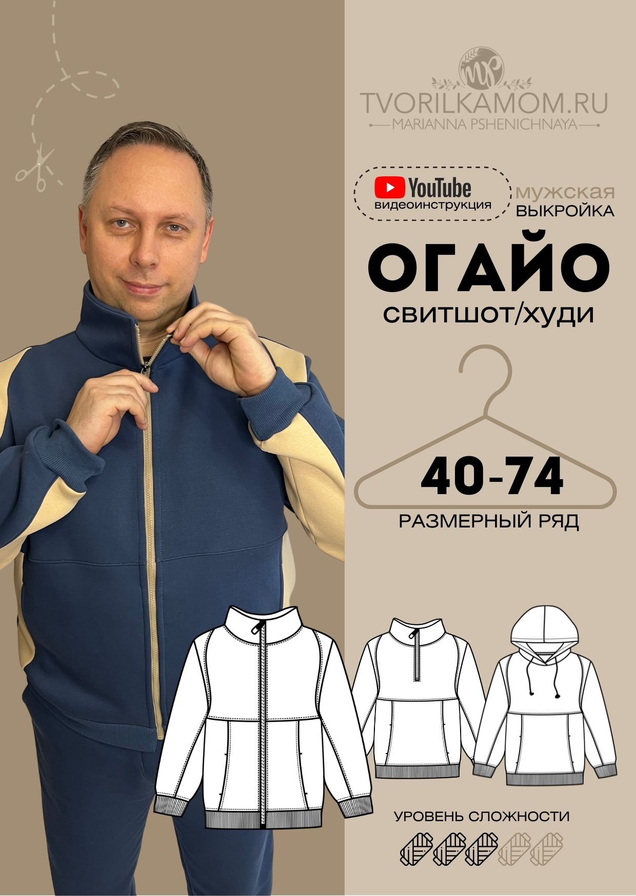 [Шитьё] Мужской свитшот/худи Огайо. Размер 40-74. Рост 170-176 [tvorilkamom]