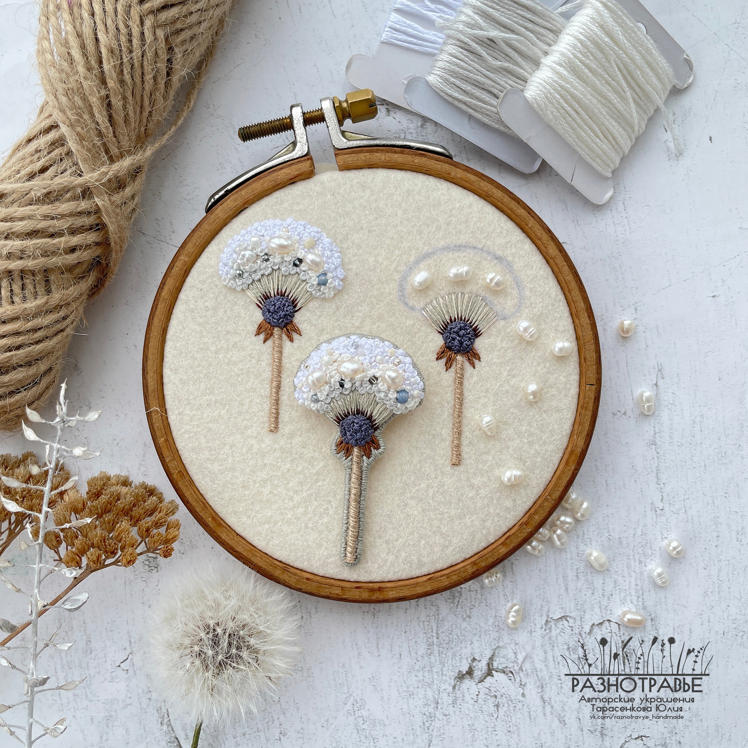 [Вышивка] Одуванчик с жемчугом [Разнотравье] [Юлия Тарасенкова]